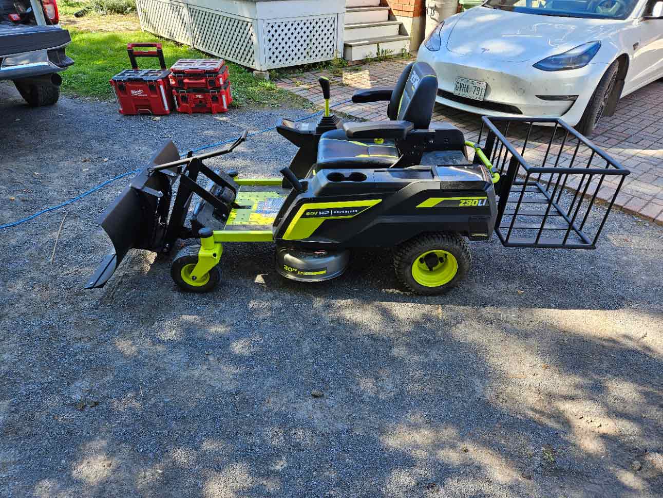 Electric 0-Turn Mower Plow & Counterweight-Utility Basket